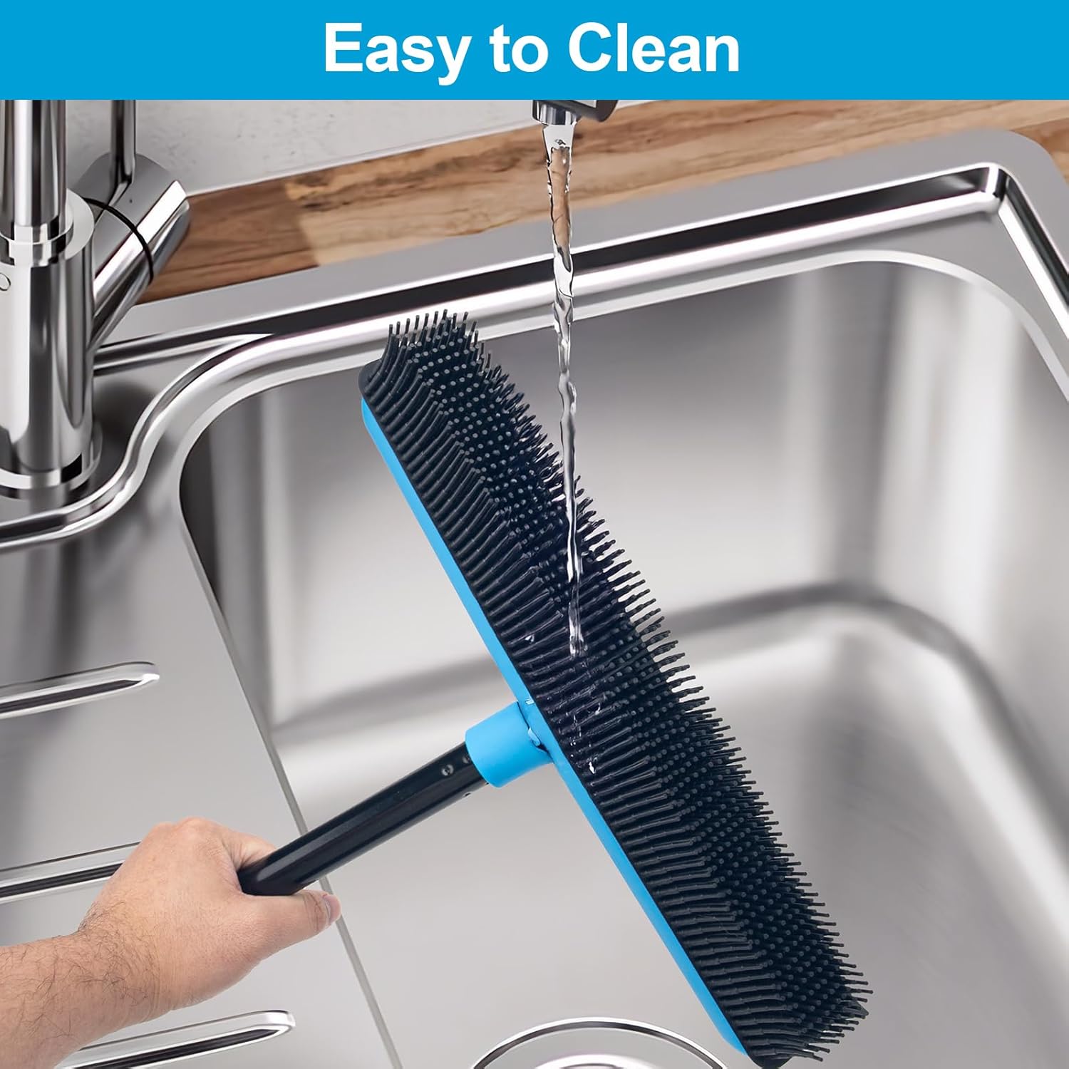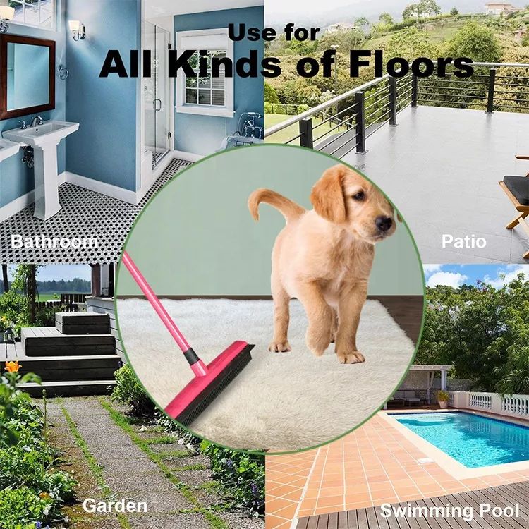 The rubber broom is not only used as a carpet brush for pet hair removal but also suitable for hardwood floors, tiles, warehouses, balconies, and various indoor and outdoor environments as well as different types of stains.